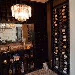 If you look at the first picture, you’ll see that the racks were installed on only two (2) sides of the room. On the 3rd side, we installed a mirror and some dark-stained wooden wine shelves to add to the overall design of the cellar.